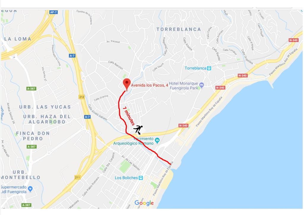 How to get to Los Pacos in Fuengirola by Train or Bus?