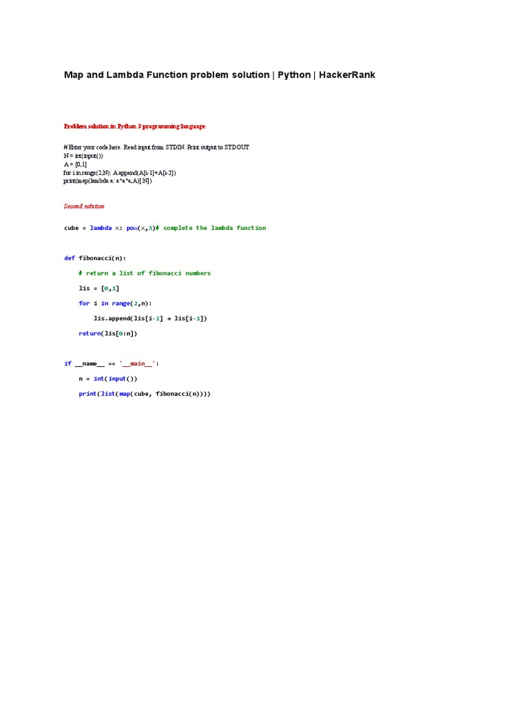Map and Lambda Function Problem Solution Python Hackerrank | PDF